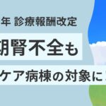 末期腎不全に限ってではありますが、がん以外の病気への緩和ケアの提供が診療報酬で支えられるようになった点で、今回の診療報酬改定は日本の緩和ケアにおける大きな転換点の一つと言ってよいでしょう。